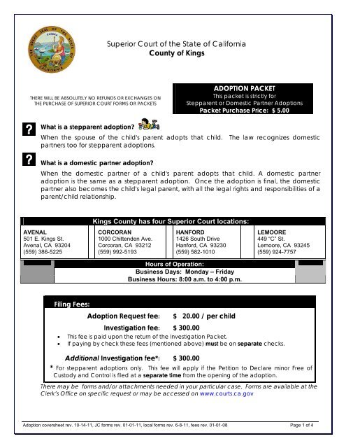 Adoption Packet Cover Sheet Kings County Superior Court State